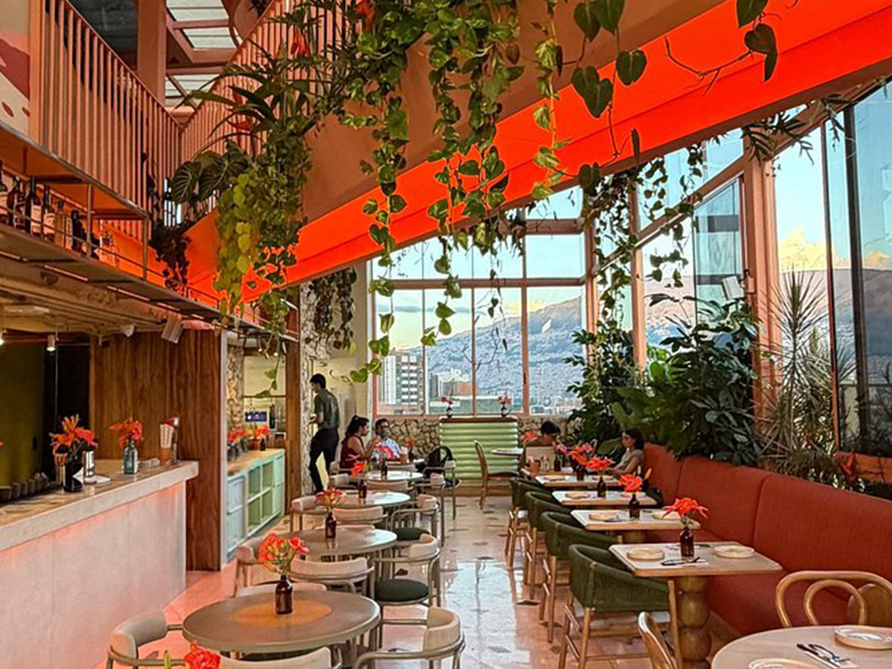 Enjoy breakfast with a city view at Plama Pitón, our rooftop restaurant, considered one of the best spots for views in Medellín. Downstairs, the lobby café serves origin coffee and makes a great workspace or social meeting point.